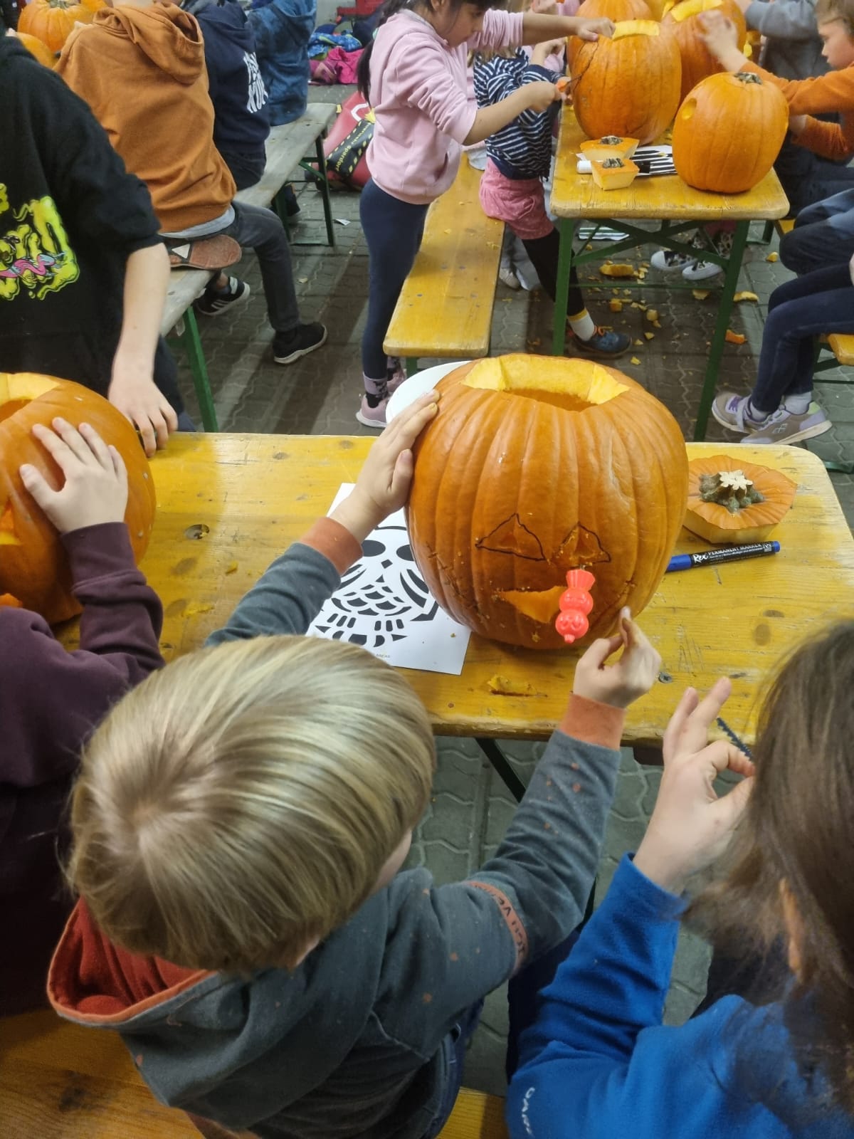 Am 26.10.2025, eine Woche vor Halloween, schnitzten 20 Löschdrachen jeder einen Kürbis.Die Kinder waren mit großen Eifer bei der Sache